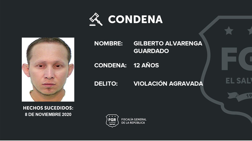 Chalatenango. A 12 años de prisión fue condenado Gilberto Alvarenga Guardado por haber violado a una menor de edad, el 8 de noviembre del 2020, en el cantón Guarjila, Chalatenango Sur.