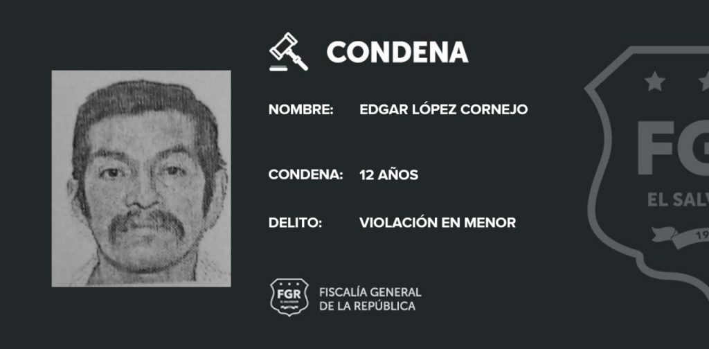 Cojutepeque, Cuscatlán. La Unidad de Atención Especializada para la Mujer, Niñez y Adolescencia de la Oficina Fiscal de Cojutepeque logró condenar a 12 años de prisión a Edgar López Cornejo, por el delito de Violación en Menor e Incapaz, en perjuicio de una víctima con régimen de protección.