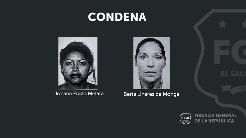 Se trata de Berta Alicia Linares de Monge, alias “Zapatito” y Johana Alexandra Erazo Melara, alias “China”, ambas enfrentaron el delito de Extorsión Agravada, durante la vista pública que se desarrolló en el Tribunal Segundo de Sentencia de San Salvador.