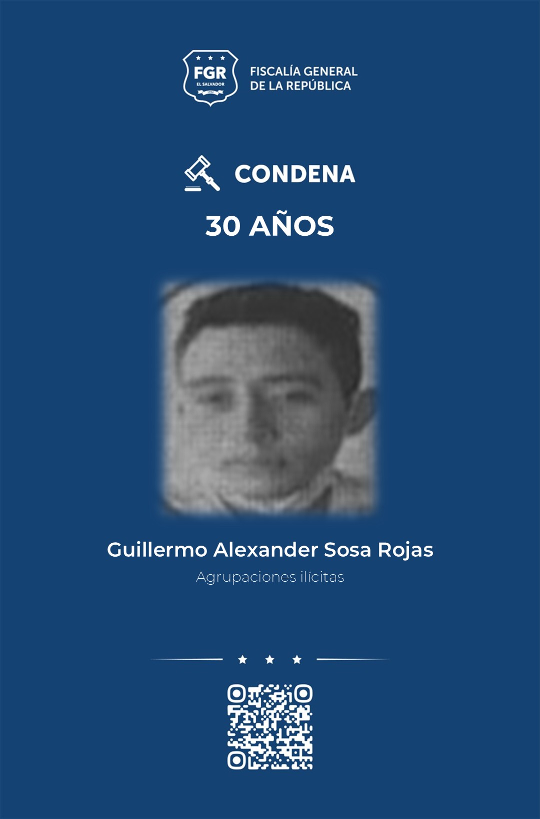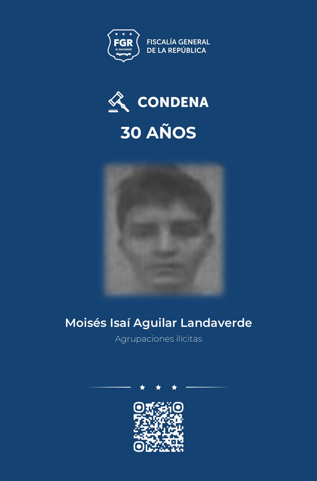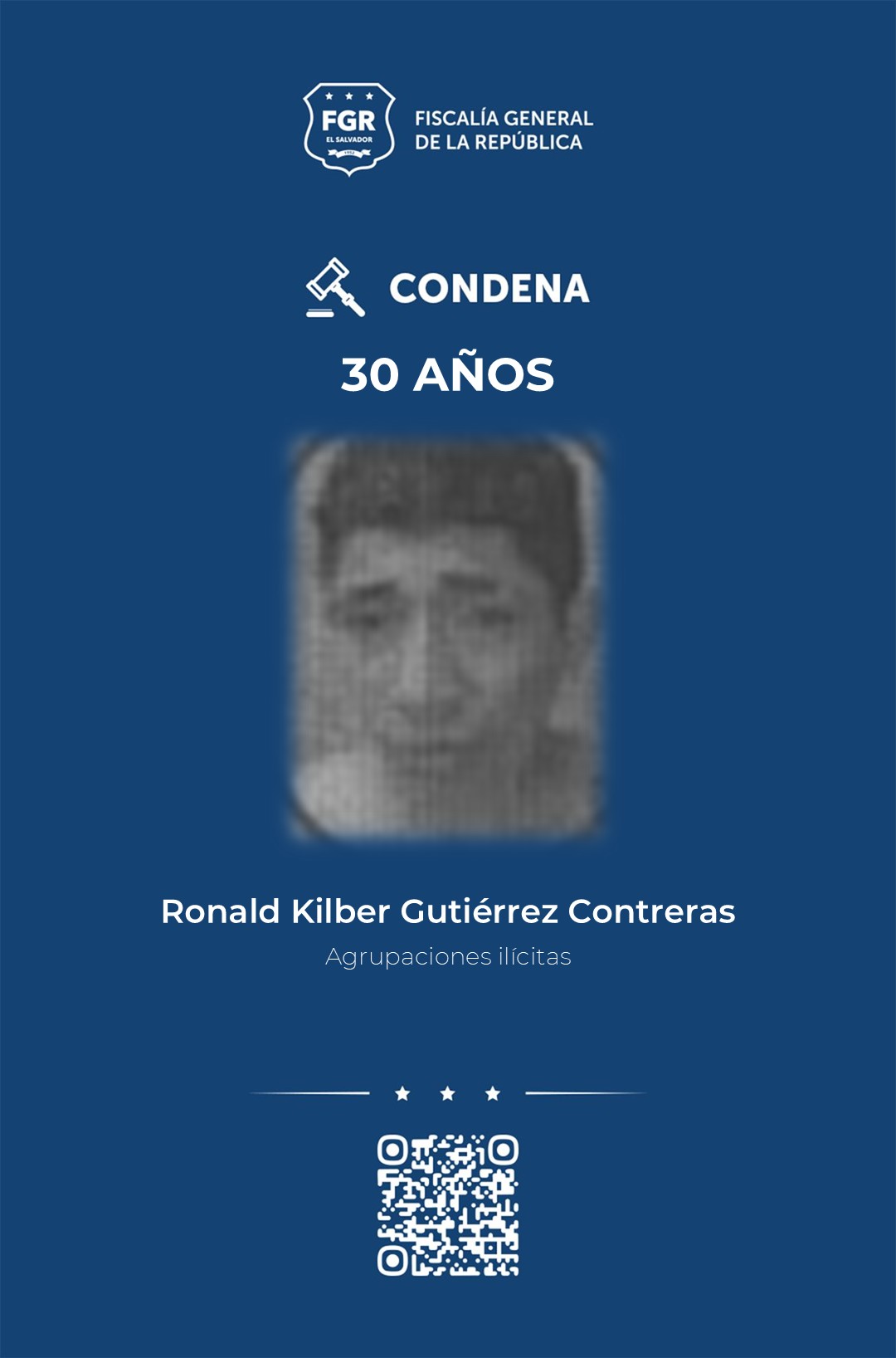 Otros de los condenados a 30 años por el delito de agrupaciones ilícitas, son: Franklin Arturo Arana Najera, Guillermo Alexander Sosa Rojas, Ronald Kilber Gutiérrez Contreras, Cristian Alejandro Contreras Gutiérrez, Moisés Isaí Aguilar Landaverde, Gerson Duval Vásquez Rojas y Marcos Armando Hidalgo Umaña.