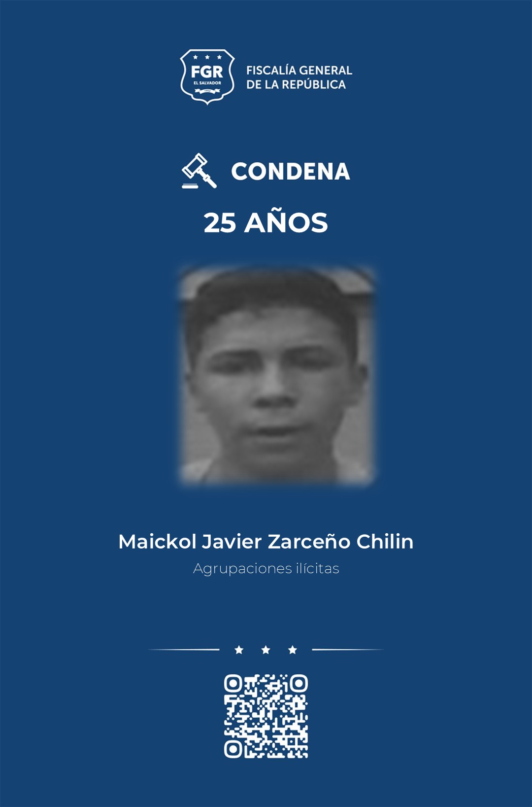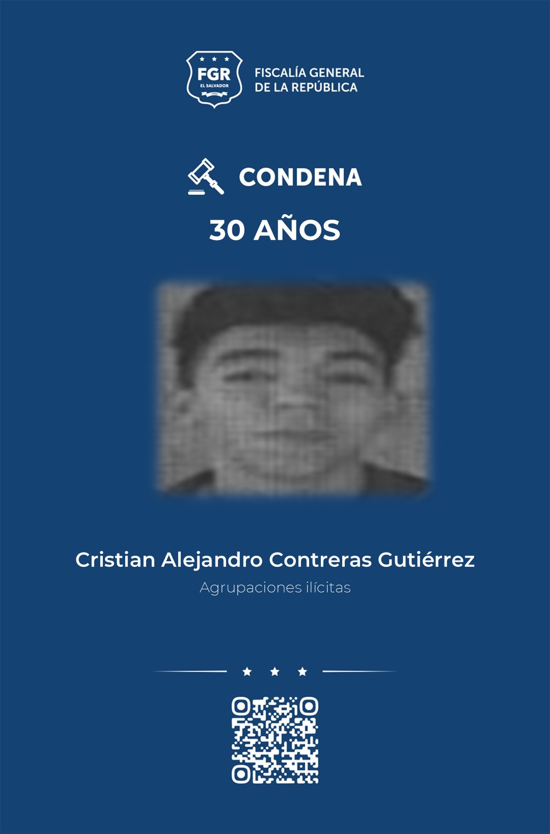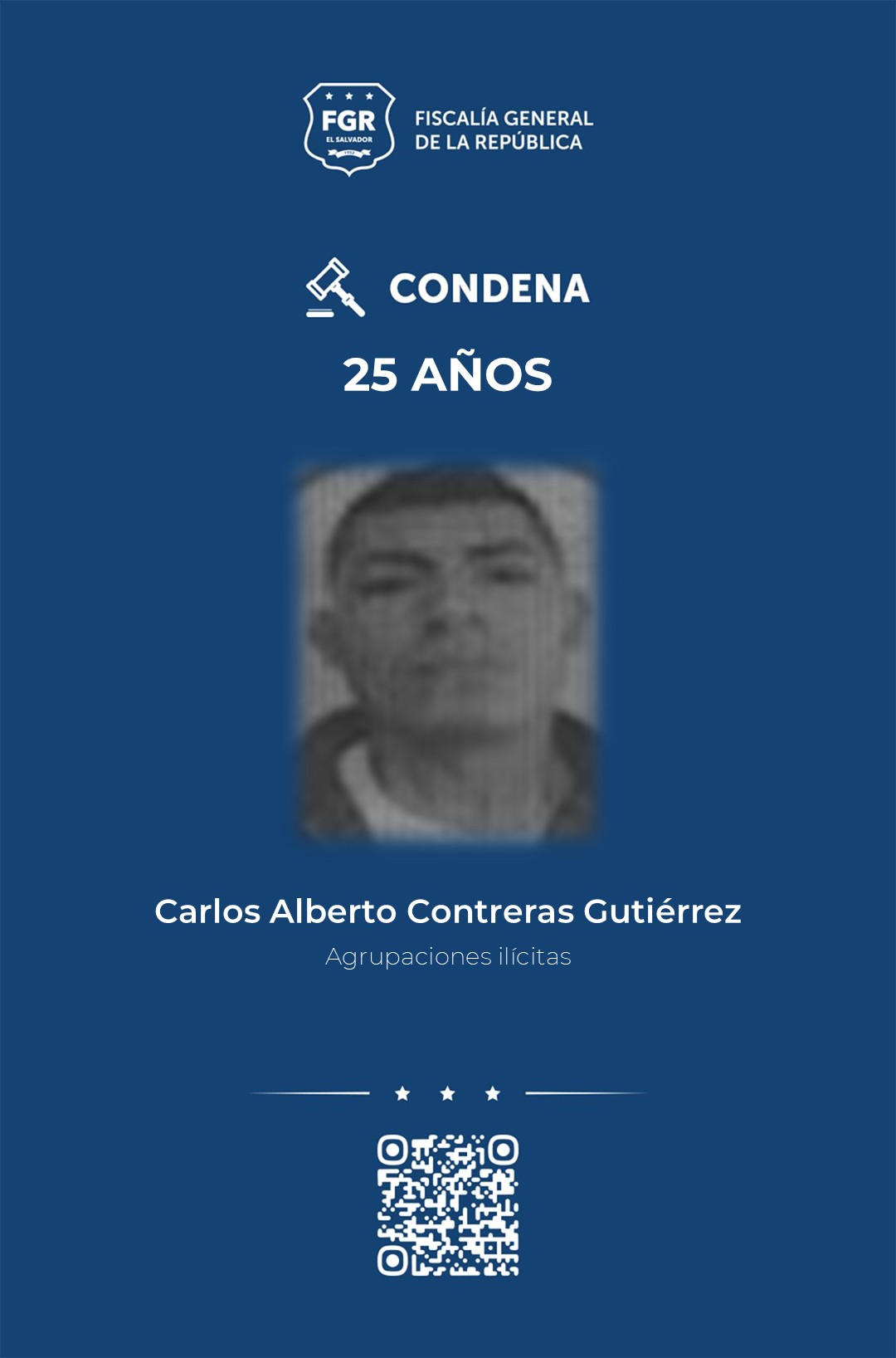 Otros de los condenados a 30 años por el delito de agrupaciones ilícitas, son: Franklin Arturo Arana Najera, Guillermo Alexander Sosa Rojas, Ronald Kilber Gutiérrez Contreras, Cristian Alejandro Contreras Gutiérrez, Moisés Isaí Aguilar Landaverde, Gerson Duval Vásquez Rojas y Marcos Armando Hidalgo Umaña.