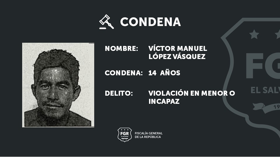 Ahuachapán. La Fiscalía General de la República recabó abundantes elementos de prueba que demostraron que Víctor Manuel López Vásquez violó a una menor de edad en el 2012, y fue condenado a 14 años de cárcel. El hecho sucedió en el cantón Llano La Laguna del departamento de Ahuachapán.