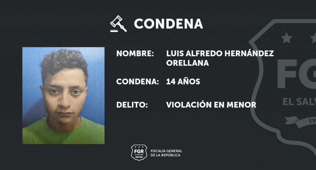 Ilobasco, Cabañas. Fiel al compromiso de defender el derecho de los menores de edad a vivir en ambientes libres de violencia física o sexual, la Fiscalía logró condenar a Luis Alfredo Hernández Orellana a 14 años de prisión, por haber violado a una niña en Sensuntepeque, Cabañas, el 25 de julio de 2021.