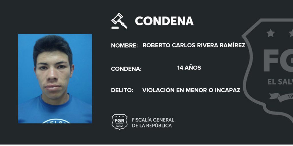La sentencia condenatoria fue impuesta por el Tribunal de Sentencia de Chalatenango, luego de que el juez admitiera las pruebas presentadas por la Fiscalía, entre las que destaca el testimonio de la víctima, pruebas de ADN, periciales y documentales.