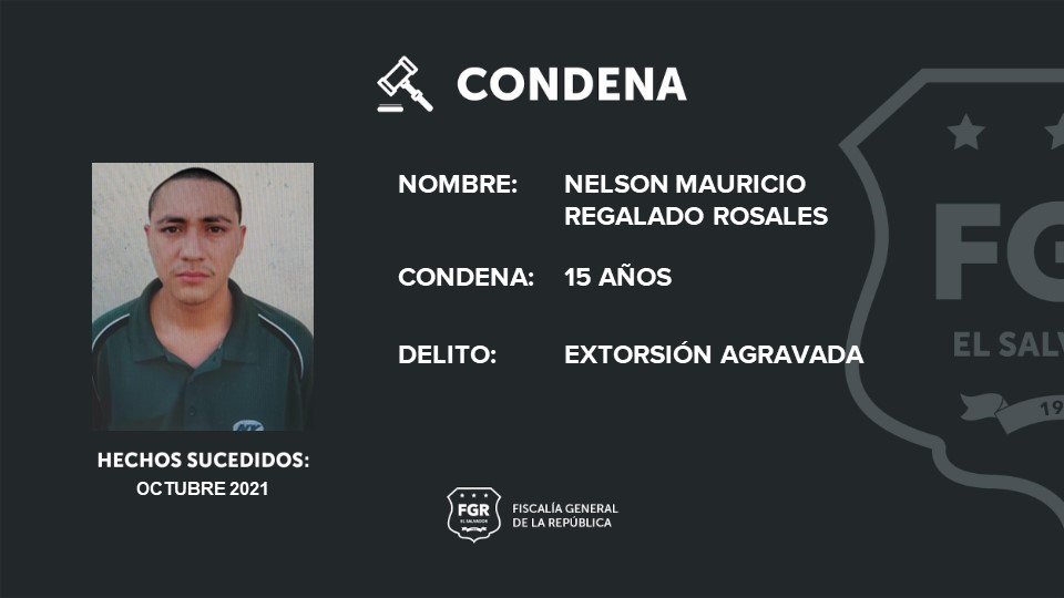 Ahuachapán. Wilber Octavio Fajardo Matozo fue condenado a 15 años de prisión por el delito de extorsión agravada. El imputado exigió $300 dólares a la víctima a cambio de no quitarle la vida.