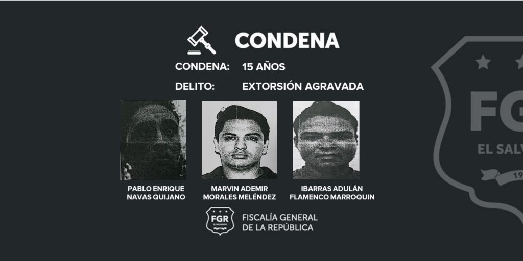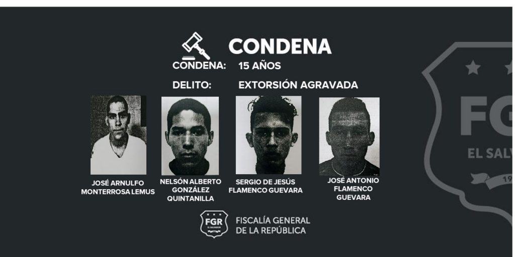 La condena impuesta -a cada imputado- por el delito de Extorsión Agravada fue de 15 años, más el pago de $800 dólares en concepto de responsabilidad civil a la víctima; esta deberá ser pagada por cada pandillero.