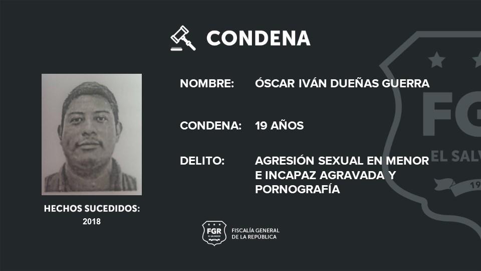 Santa Ana. Óscar Iván Dueñas Guerra fue declarado culpable por el delito de agresión sexual en menor o incapaz agravada y pornografía.