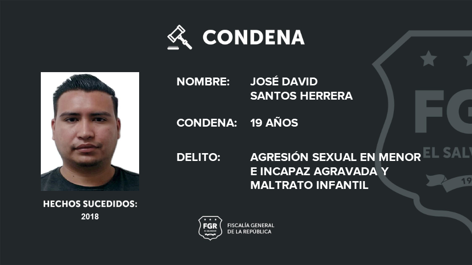 La Paz. La Fiscalía General de la República logró que José David Santos Herrera fuera sentenciado a 19 años de prisión por los delitos de agresión sexual en menor e incapaz agravada y maltrato infantil.