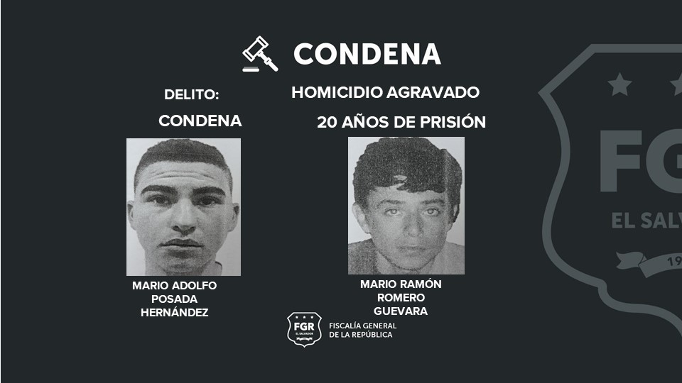 Chalatenango. Mario Adolfo Posada Hernández y Mario Ramón Romero Guevara fueron sentenciados a 20 años de prisión -cada uno- por el Homicidio de Julio Cesar Murcia, en una cantina de Chalatenango.