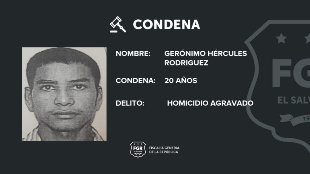 Chalatenango. Gracias a los elementos probatorios presentados por la Fiscalía General de la República (FGR) se logró condena ejemplar de 20 años de prisión para Gerónimo Hércules Rodríguez, a quien se le acusó de asesinar a Moisés Salomón Portillo, por considerar que era informante de la policía; el crimen se perpetró en el cantón La Laguna Seca, del municipio de Nueva Concepción, Chalatenango.