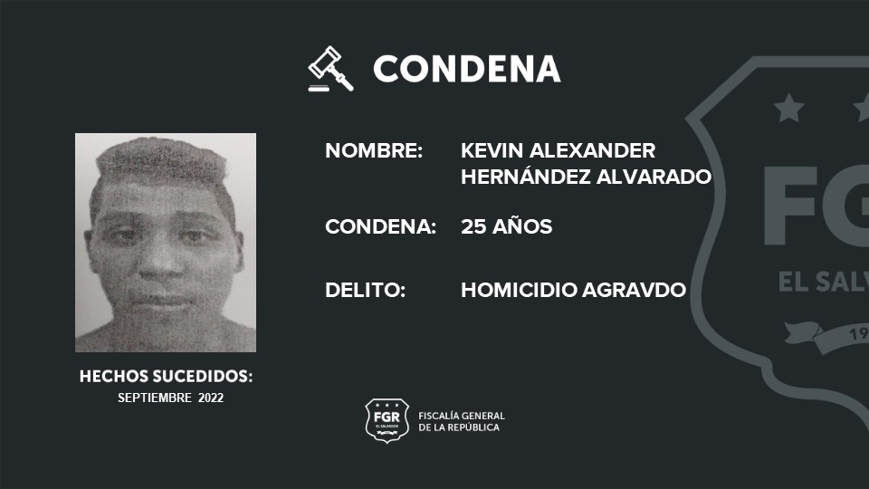 Santa Ana. Kevin Alexander Hernández Alvarado fue encontrado culpable de cometer del delito de homicidio agravado y fue condenado a una pena de 25 años de cárcel.