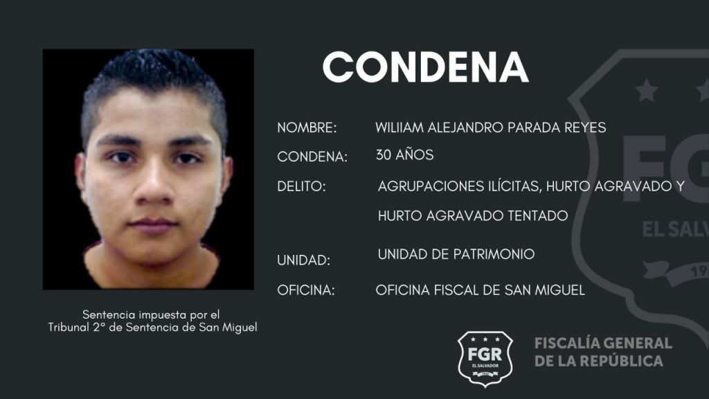 La sentencia condenatoria fue emitida por el Juzgado Segundo de Sentencia de San Miguel, que se suma a la de otros tres integrantes de la banda que en agosto del año 2021 también fueron condenados por los mismos delitos.