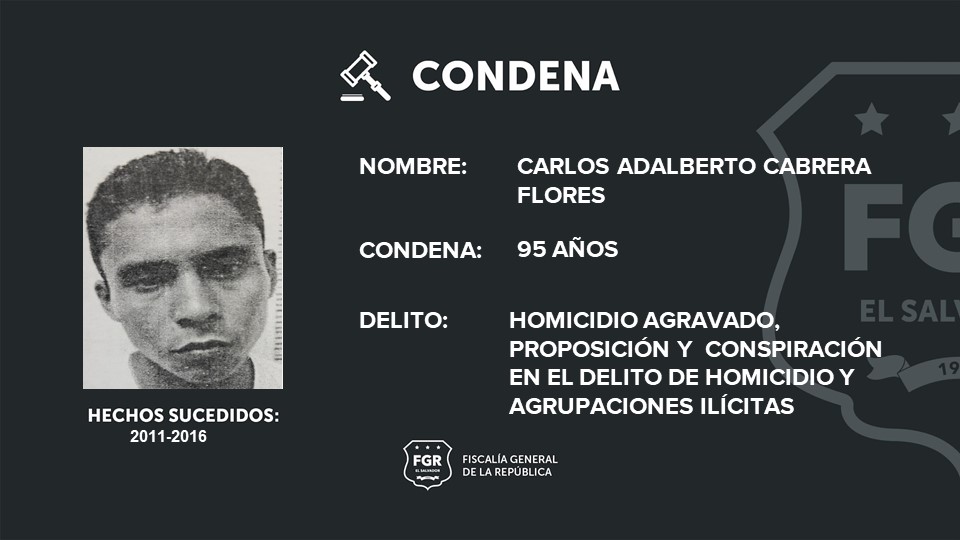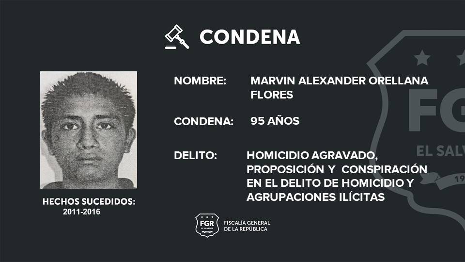 -Carlos Adalberto Cabrera Flores, conocido por Carlos Neftaly Flores Fuentes, alias “Sleyer”; Marvin Eli Aguirre Pichinte, Marvin Elix Aguirre García o Marvin Alexis Aguilar García, alias “Shadow”, y Marvin Alexander Orellana Flores o Carlos Francisco Orellana Flores, alias “Cuervo” 95 años de prisión.