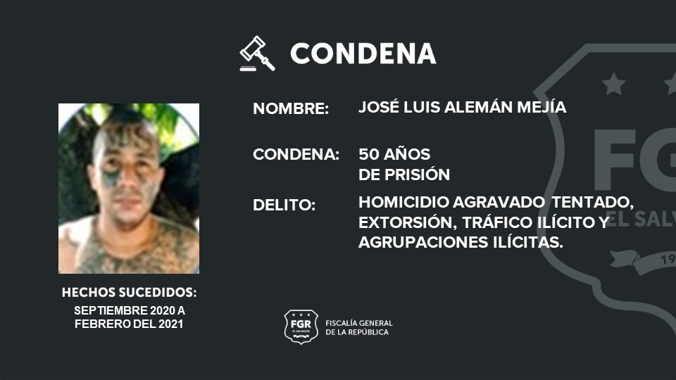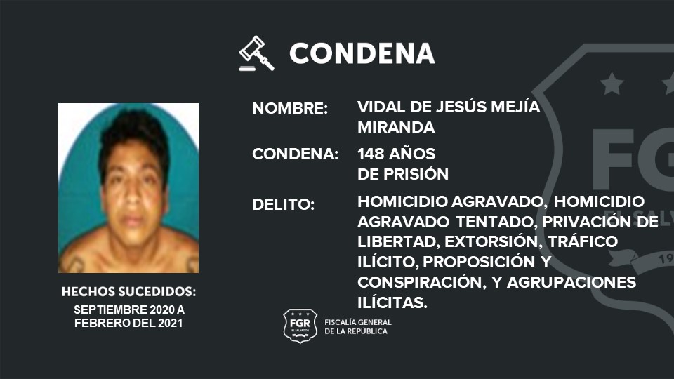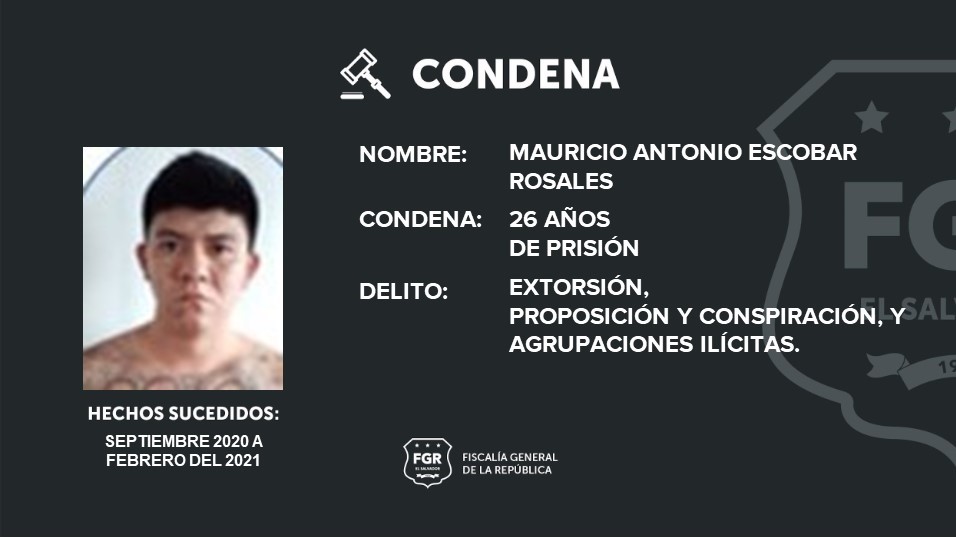 Las penas de cárcel fueron impuestas por el Tribunal Quinto contra el Crimen Organizado de San Salvador, que validó las pruebas de cargo presentados en contra de los imputados.