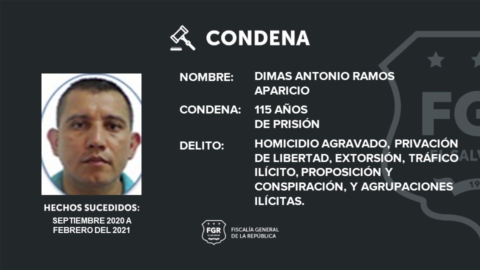 También, Vidal de Jesús Mejía Miranda que fue condenado a 148 años, y Dimas Antonio Ramos Aparicio a 115 años.
