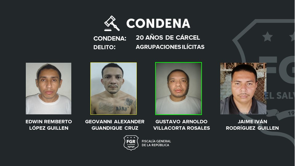 Otros pandilleros como Edwin Remberto López Guillen, Geovanni Alexander Guandique Cruz, Gustavo Arnoldo Villacorta Rosales, Jaime Iván Rodríguez Guillen, José Moisés López González y Milton Arturo Fuentes Guardado fueron condenados a 20 años de cárcel.