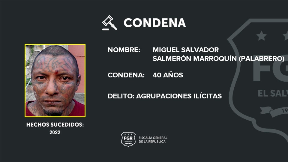 A Miguel Salvador Salmerón Marroquín, quien mantenía el rango de palabrero dentro de la estructura fue sentenciado a 40 años de cárcel.