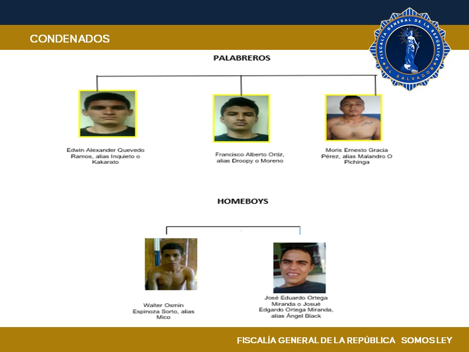 Durante la vista pública instalada en el Tribunal Especializado de Sentencia de Santa Ana, el fiscal del caso presentó prueba documental, pericial, contando además con la declaración de un testigo con régimen de protección, con lo cual quedó demostrada la existencia de los delitos y la participación de los imputados en los diferentes casos donde estaban involucrados.