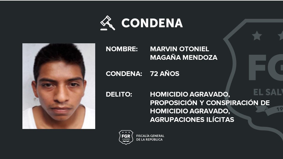Finalmente, Marvín Otoniel Magaña Mendoza fue sentenciado a 72 años de cárcel tras comprobar que había sido participe del cometimiento de dos Homicidios Agravados, haber planificados tres asesinatos, y ser parte de un grupo pandilleril.