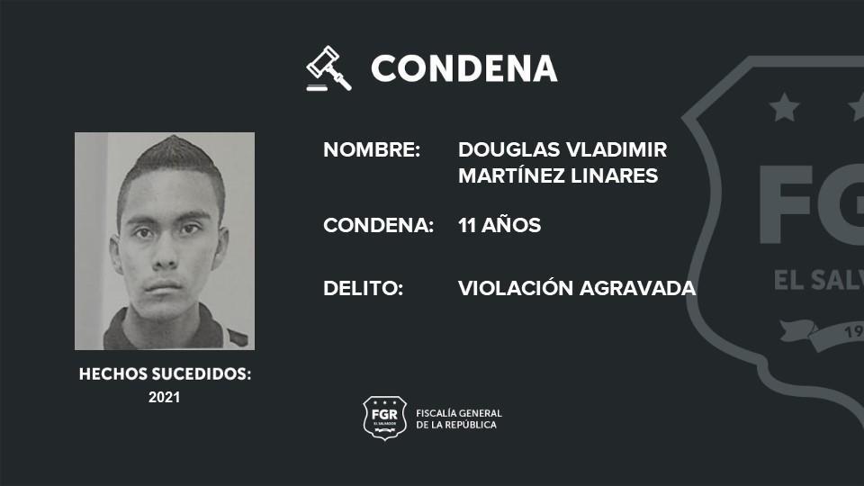 Ahuachapán. Gracias a las pruebas de la Fiscalía, Douglas Vladimir Martínez Linares fue condenado en un juicio a once años de prisión por haber violado a una mujer, a quien llevó a la fuerza hasta un predio baldío.