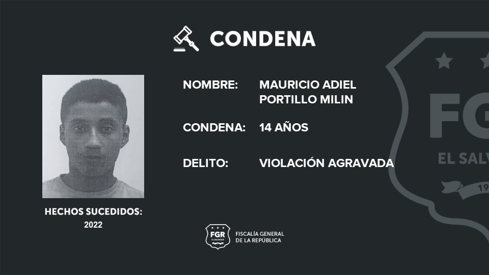 Sonsonate. Mauricio Adiel Portillo Milín fue sentenciado a 14 años de prisión por haber violado a una mujer de 66 años, en noviembre de 2022.