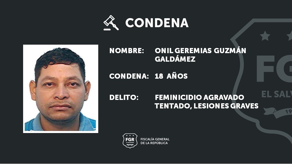 Sonsonate. Onil Geremias Guzmán Galdámez acuchilló a su esposa mientras ella y otros familiares estaban en un culto religioso, el 31 de marzo del año 2021 en el cantón los Gramales, del municipio de Caluco, departamento de Sonsonate. Tras las pruebas presentadas por la Fiscalía, al imputado se le condenó una pena de 18 años de prisión.