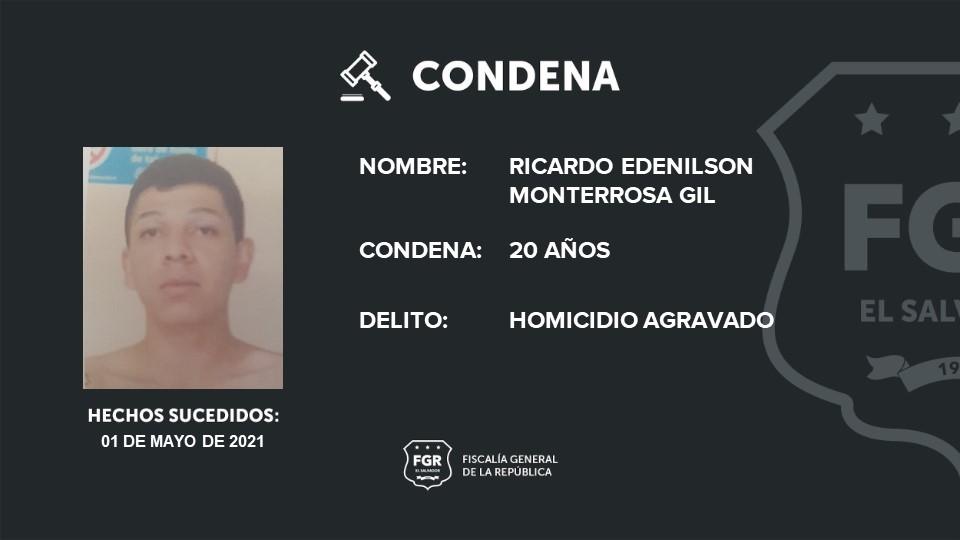 Santa Ana. La Fiscalía General de la República logró una condena de 20 años de prisión para Ricardo Monterrosa, por haber participado en el asesinato de una víctima en el 2021.