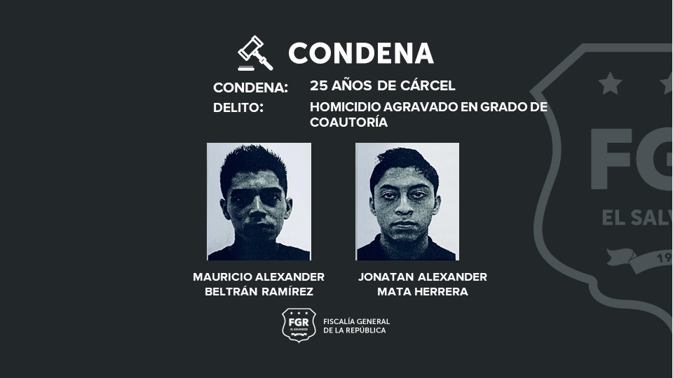 Los condenados fueron identificados como: Geovanni Enrique López Paula, alias “chucho”; José Alfredo Ventura Reyes, alias “moreno; “Jonatan Alexander Mata Herrera, alias “chacuate”; Mauricio Alexander Beltrán Ramírez, alias ”wicho o Mauricio”; Hugo Orlando Mendoza Paula, alias “chumpe” y Orlando Armando Rafael Ramírez, alias “misterio”, quien figura como reo ausente y declarado rebelde en el proceso.