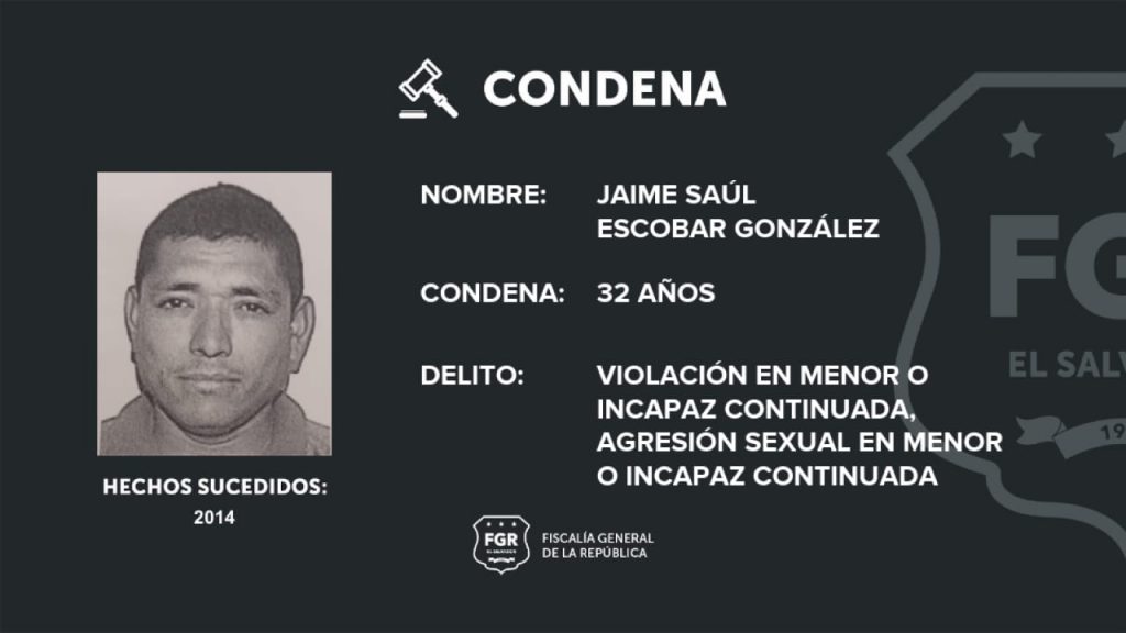Jaime Saúl Escobar González fue sentenciado a 32 años de cárcel, luego que la Fiscalía demostró ante un tribunal que el imputado había agredido sexualmente a una menor de edad desde que tenía nueve años.