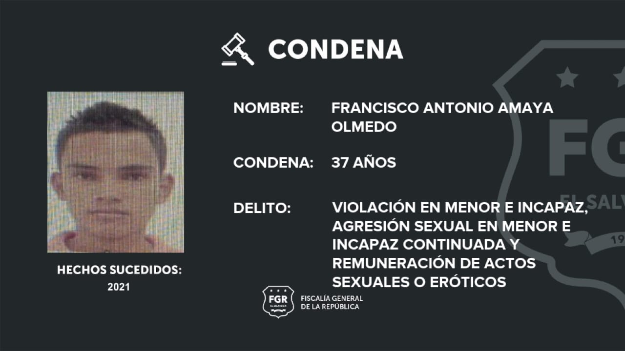 Tras conocer esos hechos y las pruebas que presentó la FGR, el Tribunal Segundo de Sentencia de Santa Tecla logró establecer la culpabilidad de ambos procesados en los delitos de violación en menor e incapaz, agresión sexual en menor e incapaz continuada e inducción, promoción y favorecimiento de actos sexuales o eróticos y remuneración de actos sexuales o eróticos.