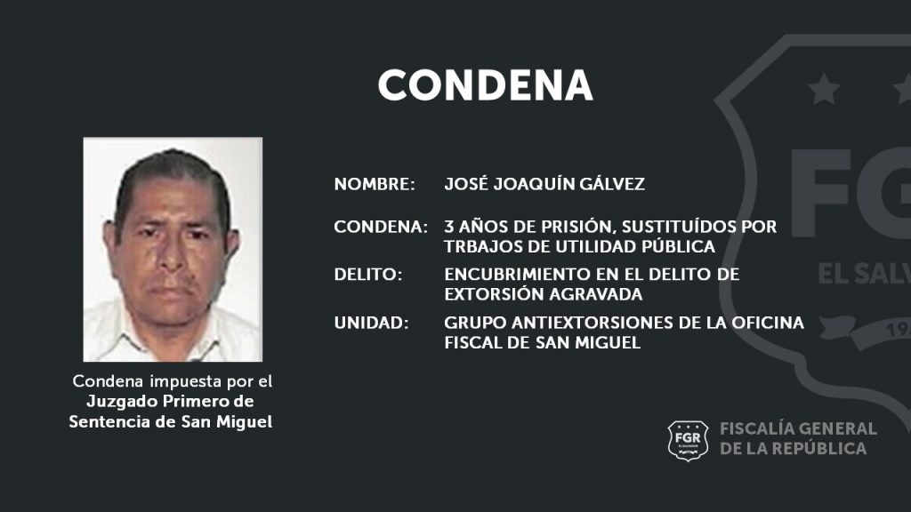 San Miguel. José Joaquín Gálvez decidió someterse voluntariamente a un procedimiento abreviado, donde aceptó haber recibido US$670.00 exigido a través de amenazas a muerte a nombre de la MS.