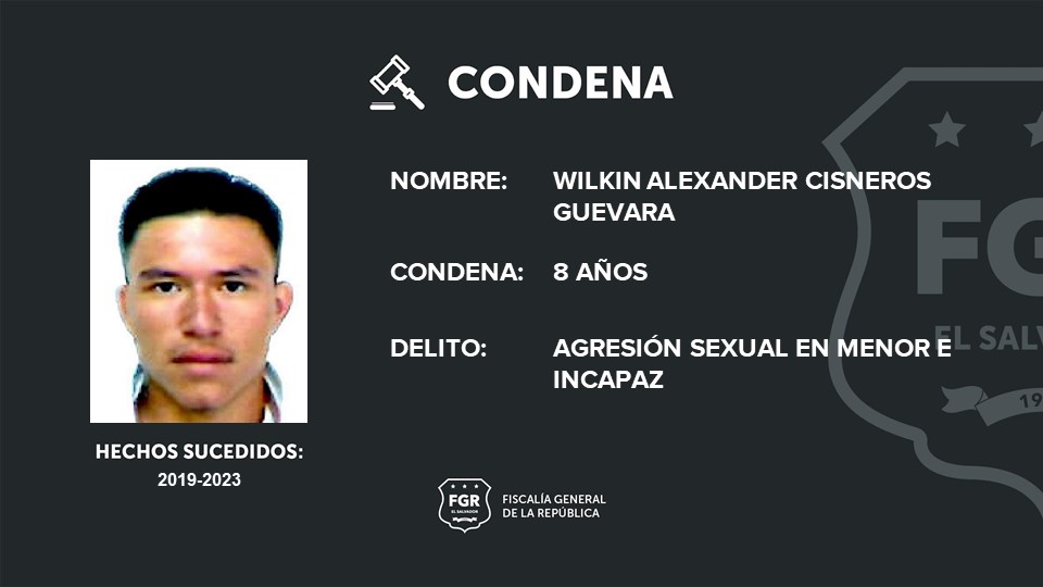 Chalatenango. Wilkin Alexander Cisneros Guevara fue sentenciado a una pena de prisión por haber tocado indebidamente a una menor de 11 años de edad. De acuerdo a la información de la Fiscalía General de la República (FGR), el hallazgo sucedió durante los años 2019 al 2023, en Chalatenango.
