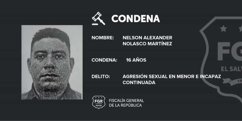 Nelson Alexander Nolasco Martínez, fue condenado a 16 años de cárcel por haber abusado sexualmente de una menor de edad, durante cinco años. Según las pruebas presentadas por los fiscales del caso, la víctima tenía 11 años en el momento que comenzaron los abusos y el último sucedió en junio de 2021, cuando la joven llegó a los 16 años.