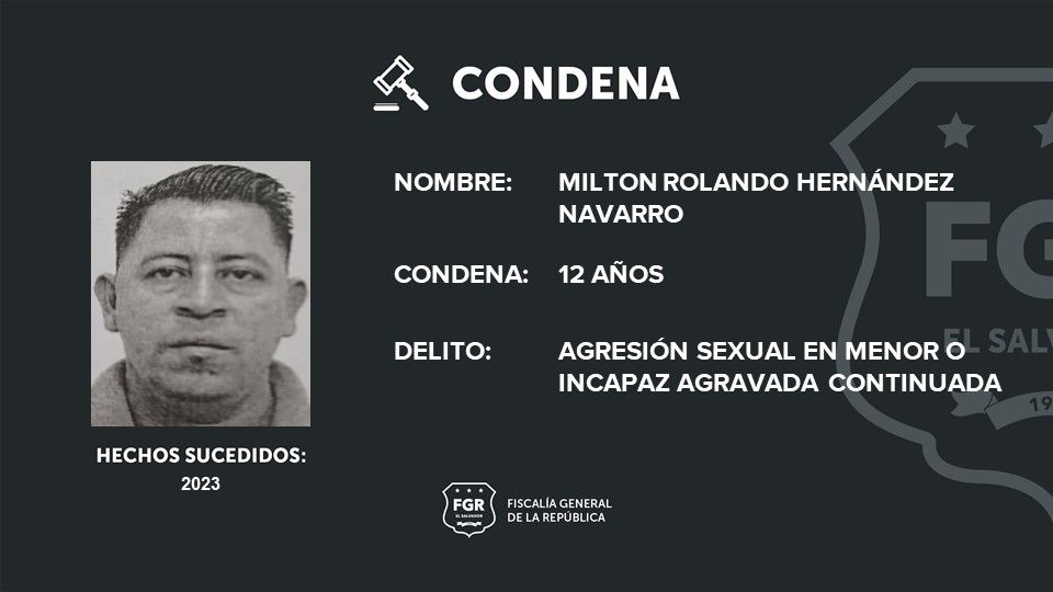 Santa Tecla, La Libertad Sur. Milton Rolando Hernández Navarro recibió  12 años de prisión, por tocar indebidamente a una menor de edad, en la jurisdicción de Sacacoyo, La Libertad Oeste.