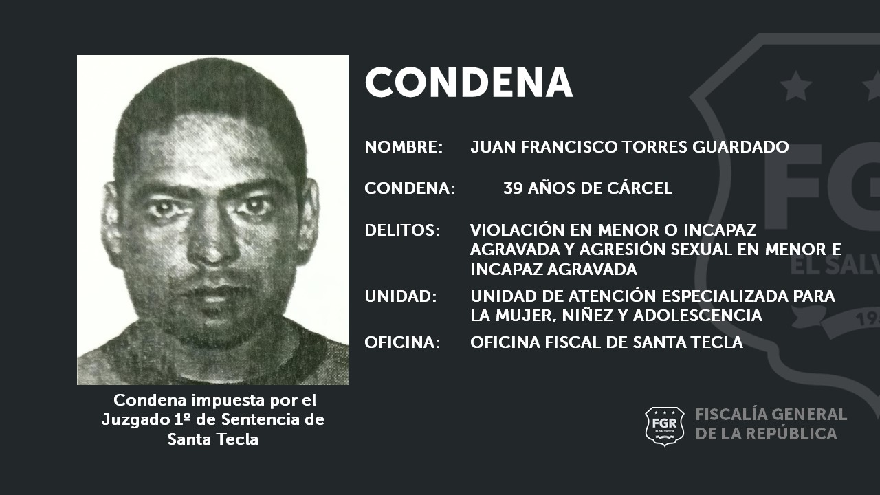 El ahora condenado fue identificado como Juan Francisco Torres Guardado, de 43 años, enfrentó la Vista Pública bajo los delitos de Violación en Menor o Incapaz agravada y Agresión Sexual en Menor e Incapaz Agravada, en perjuicio de dos adolescentes de 14 y 12 años.