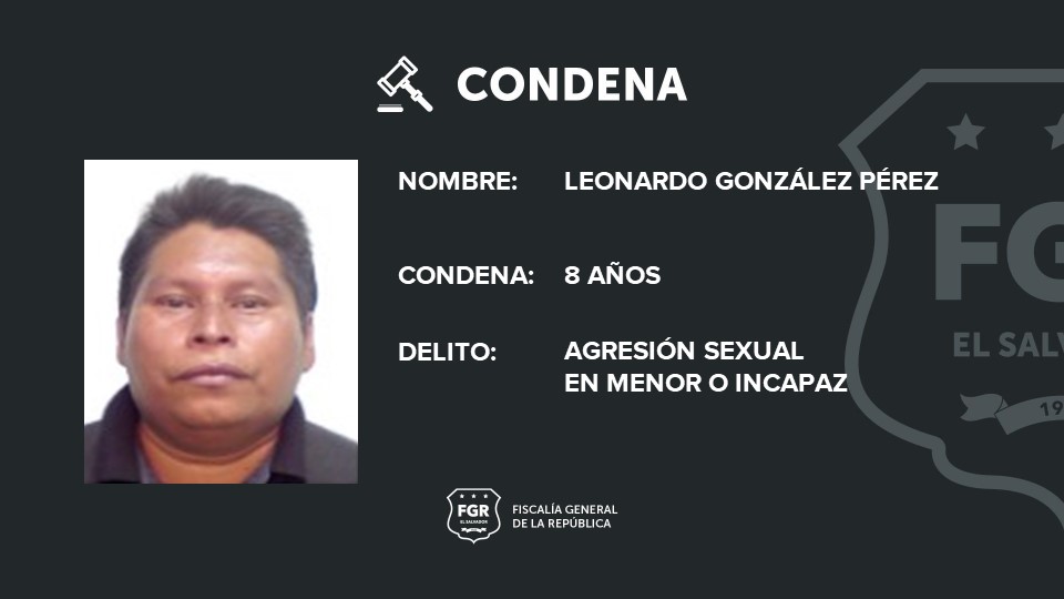 Ahuachapán. Fieles al compromiso de hacer justicia para las víctimas de delitos sexuales, la Fiscalía logró una condena de prisión para Leonardo González Pérez, a quien se le procesó penalmente por haber agredido sexualmente a su vecina, una menor de edad.