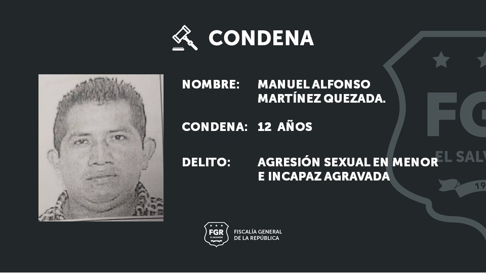 Sonsonate. La Fiscalía General de la República (FGR) logró una condena de doce años de cárcel para Manuel Alfonso Martínez Quezada, quien abusó sexualmente de una menor de edad durante los primeros tres meses del año 2018.