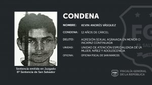 El Tribunal 6º de Sentencia de San Salvador validó toda la investigación realizada por las fiscales del caso, quienes lograron demostrar con abundante prueba técnica, pericial, científica y testimonial la culpabilidad de Kevin Andrés y, además de la pena de 12 años de cárcel, lo condenó a pagar 1,000 dólares en concepto de responsabilidad civil.