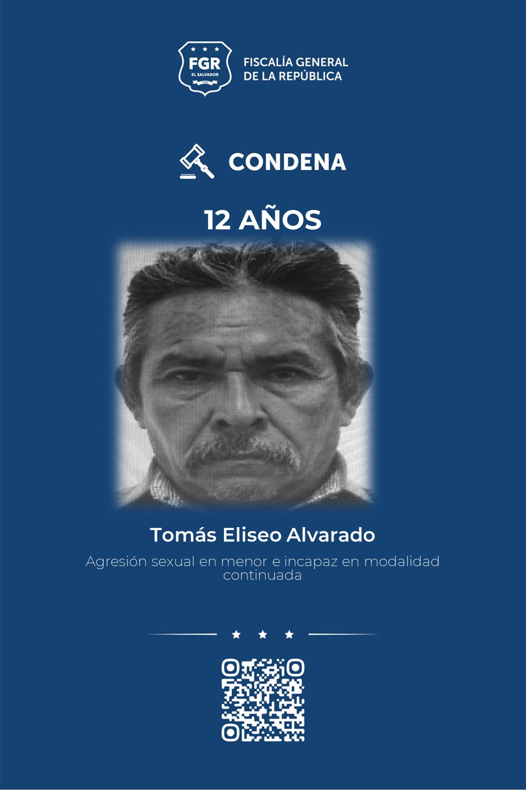Santa Tecla, La Libertad Sur. La Fiscalía General de la República (FGR) logró 12 años de prisión para Tomás Eliseo Alvarado por haber abusado de una niña de nueve años de edad en la jurisdicción de San Juan Opico, La Libertad Centro, durante el 2018.