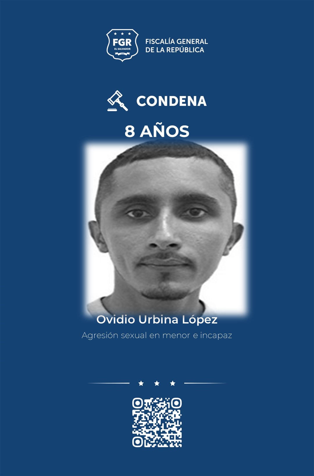 Chalatenango. Ocho años de cárcel fueron impuestos a Ovidio Urbina López por haber agredido sexualmente a una niña de 12 años, el 27 de febrero 2022 en Chalatenango Sur.