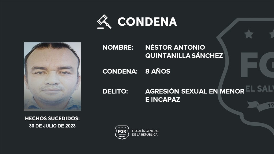 A Quintanilla Sánchez se le condenó por el delito de agresión sexual en menor e incapaz, asimismo, se le condenó civilmente a $650.00 dólares.