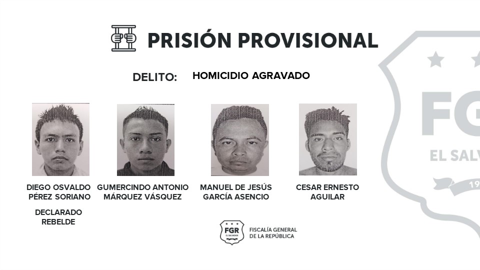 Los terroristas que serán juzgados por el homicidio son: William Adonay Rojas Arias, alias venado, Gumercindo Antonio Márquez Vázquez, alias alma negra, Elto Francisco Ramos, alias licra, Manuel de Jesús García Asensio, alias chapuda, José Daniel Márquez Vázquez alias Nayo o Nayito, César Ernesto Aguilar Martínez, alias cuyo, José Omar Aguilar Vanegas, alias mojarra, José Ovelio Aguilar Martínez, alias Lito.