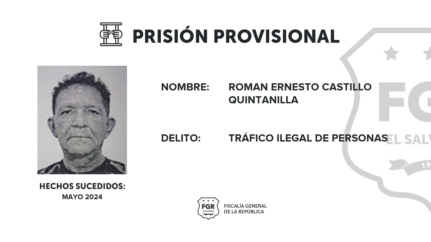 San Salvador. Con las pruebas necesarias, la Fiscalía logró que Román Ernesto Castillo Quintanilla enfrente juicio por el delito de tráfico ilegal de personas. El imputado seguirá en detención mientras avanza investigación en su contra.