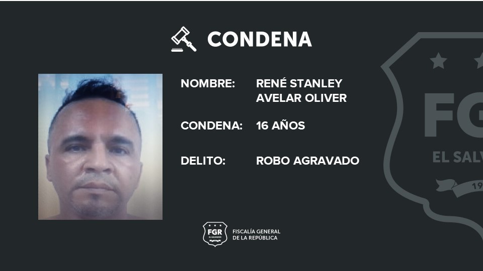 Ahuachapán. René Stanley Avelar Oliver fue condenado a 16 años de cárcel, después de que la Fiscalía General de la República demostró que en mayo de 2021 asaltó a un trabajador que repartía comida y en julio del mismo año, le robó a una persona que laboraba para una institución financiera.