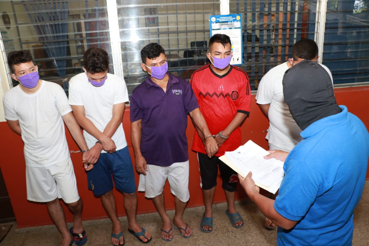 Los imputados a los cuales se les ordenó la detención administrativa son, los hermanos Guadalupe Adalberto y Juan Antonio, ambos de apellidos Orellana Gómez; William Alejandro Parada Reyes, Sergio Sigfredo Torres Reyes y Santos Vladimir Turcios, quienes responderán por los delitos de Hurto Agravado y Asociaciones Ilícitas.