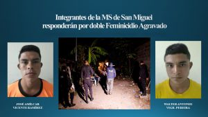 San Miguel. Esta madrugada se hicieron efectivas las detenciones de tres integrantes de la MS-13, como coautores del doble Feminicidio Agravado, de una madre y su hija en el cantón El Volcán San José, cometido el 23 de noviembre de 2017.