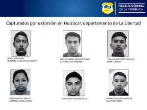 Zaragoza, La Libertad. Seis sujetos que conformaban una estructura dedicada a la extorsión en el municipio de Huizúcar, departamento de La Libertad, fueron detenidos este jueves en un procedimiento dirigido por fiscales de la Unidad de Patrimonio Privado de la oficina de Zaragoza.