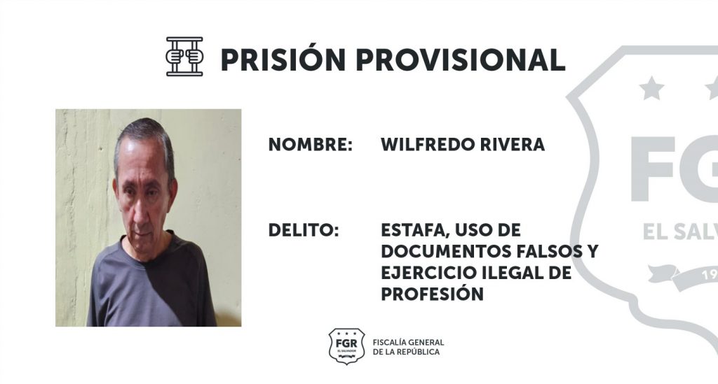 San Vicente. Gracias a las pruebas presentadas en la primera audiencia en contra de Wilfredo Rivera, la Fiscalía hizo posible que le imputado permanezca en prisión mientras avanzan las investigaciones en su contra por los delitos de estafa, uso de documentos falsos y ejercicio ilegal de la profesión.