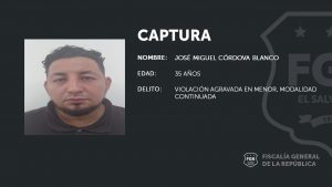 Apopa. Fiscales de la Unidad de Atención Especializada para la Mujer, Niñez y Adolescencia lograron que José Miguel Córdova Blanco, 35 años, se mantenga en prisión mientras continúa el proceso penal en su contra, por el delito de Violación Agravada, modalidad Continuada, en perjuicio de una mujer.