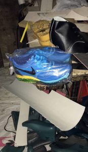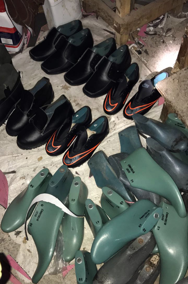 Los registros realizados en viviendas de los detenidos y dos peleterías de Santa Ana, dejó como resultado la incautación de más de trecientos pares de zapatos tenis de marcas reconocidas y materiales para la elaboración de los mismos, los cuales eran ofrecidas comercialmente como “Repliks” y entregadas a domicilio en la zona occidental y San Salvador.